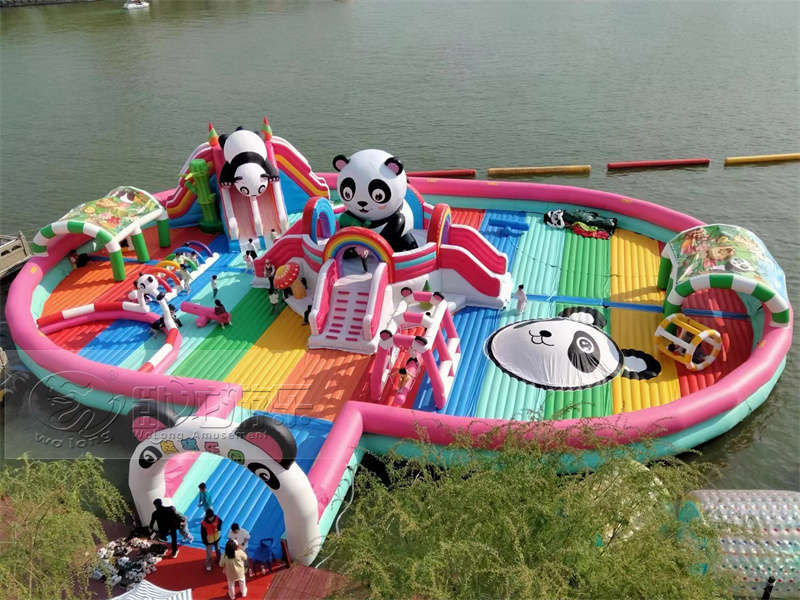 水库、湖泊等水域,之前由于没有合适的游乐设备,就这么空着白白浪费掉。自从卧龙设计了星辰大海水上漂浮乐园之后,已经有水域上搭建并运营了,效果还不错。这不,卧龙又设计了新主题,这次是熊猫水上漂浮乐园。